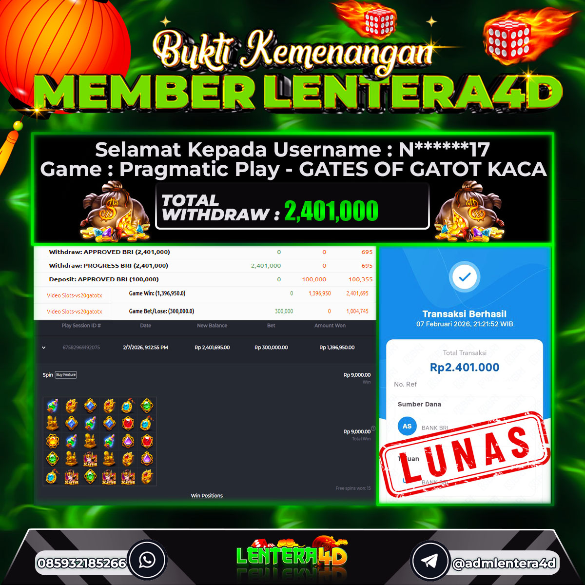 TOTAL KEMENANGAN : Rp. 2.401.000,-
