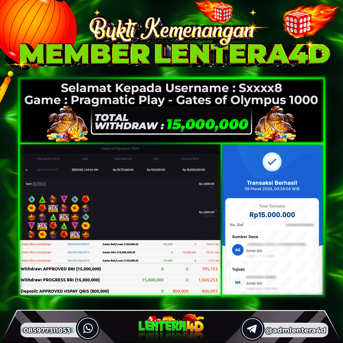 TOTAL KEMENANGAN : Rp 15.000.000,-