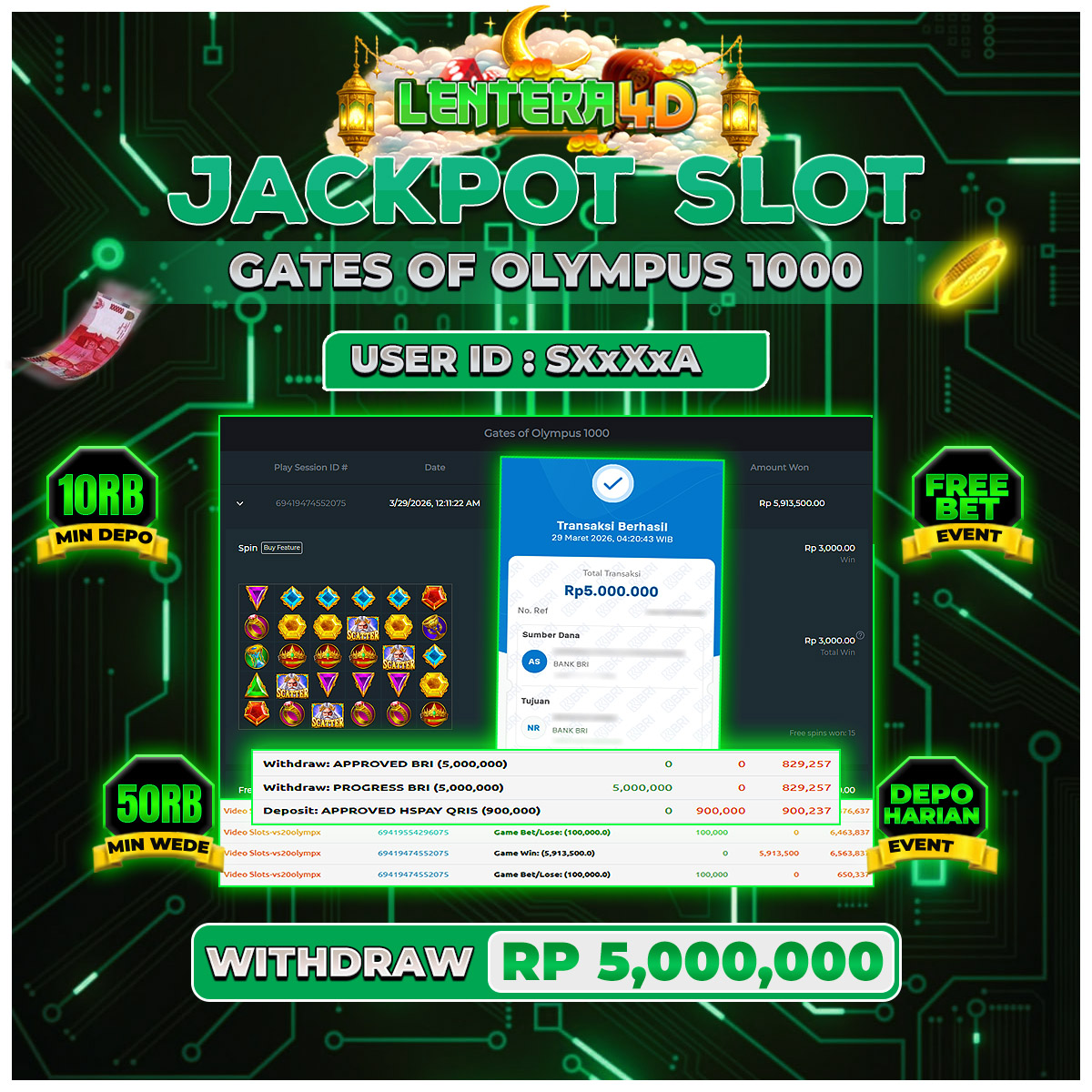 Setiap hari, member Lentera4D berhasil meraih jackpot besar dari berbagai provider slot ternama yang kami sediakan, seperti Pragmatic Play, Habanero, PG Soft, dan masih banyak lagi. Kami secara rutin menampilkan bukti screenshot atau rekapan kemenangan yang berhasil diraih, mulai dari kemenangan ratusan ribu hingga puluhan juta rupiah. Semua slip kemenangan ini kami hadirkan untuk membuktikan bahwa di Lentera4D, peluang menang itu nyata.