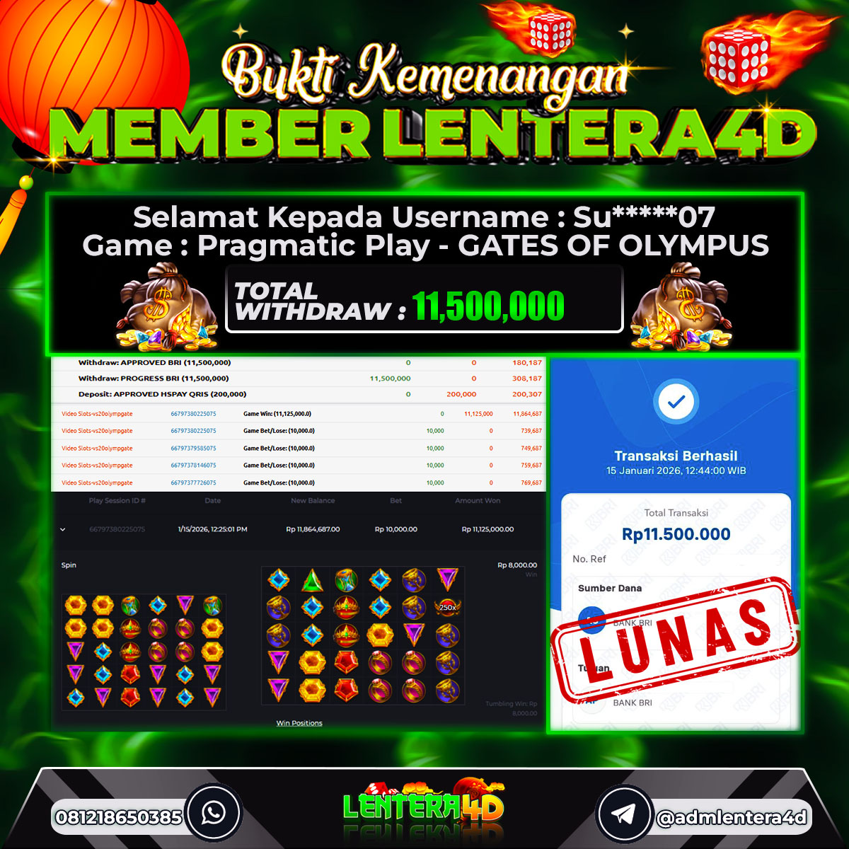 JACKPOT MAIN GATES OF OLYMPUS 15 JANUARI 2026, Jackpot Slot Gacor, Kemenangan Slot, Bukti Kemenangan Slot, Kemenangan Slot Pragmatic Play, Menang Slot online, Slot Gacor, Situs Aman Terpercaya, WD Berapapun Pasti DI Bayar Tuntas, Maxwin Slot Online.