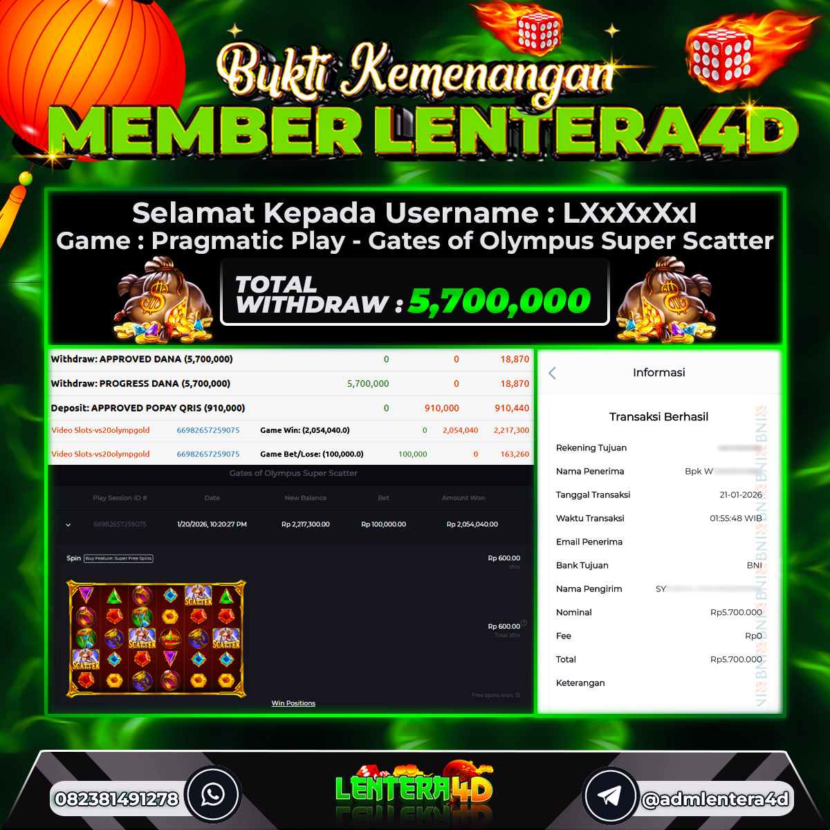 Satu lagi Bukti JP dan Pembarayan Sah Dan Dapat Dipertanggung Jawabkan, WD Berapapun Pasti Dibayar Lunas Hanya di Situs LENTERA 4D. Hati Hati Kepada Pihak Pihak Yang Mengatas namakan Pihak LENTERA4D Untuk Melakukan Penipuan.