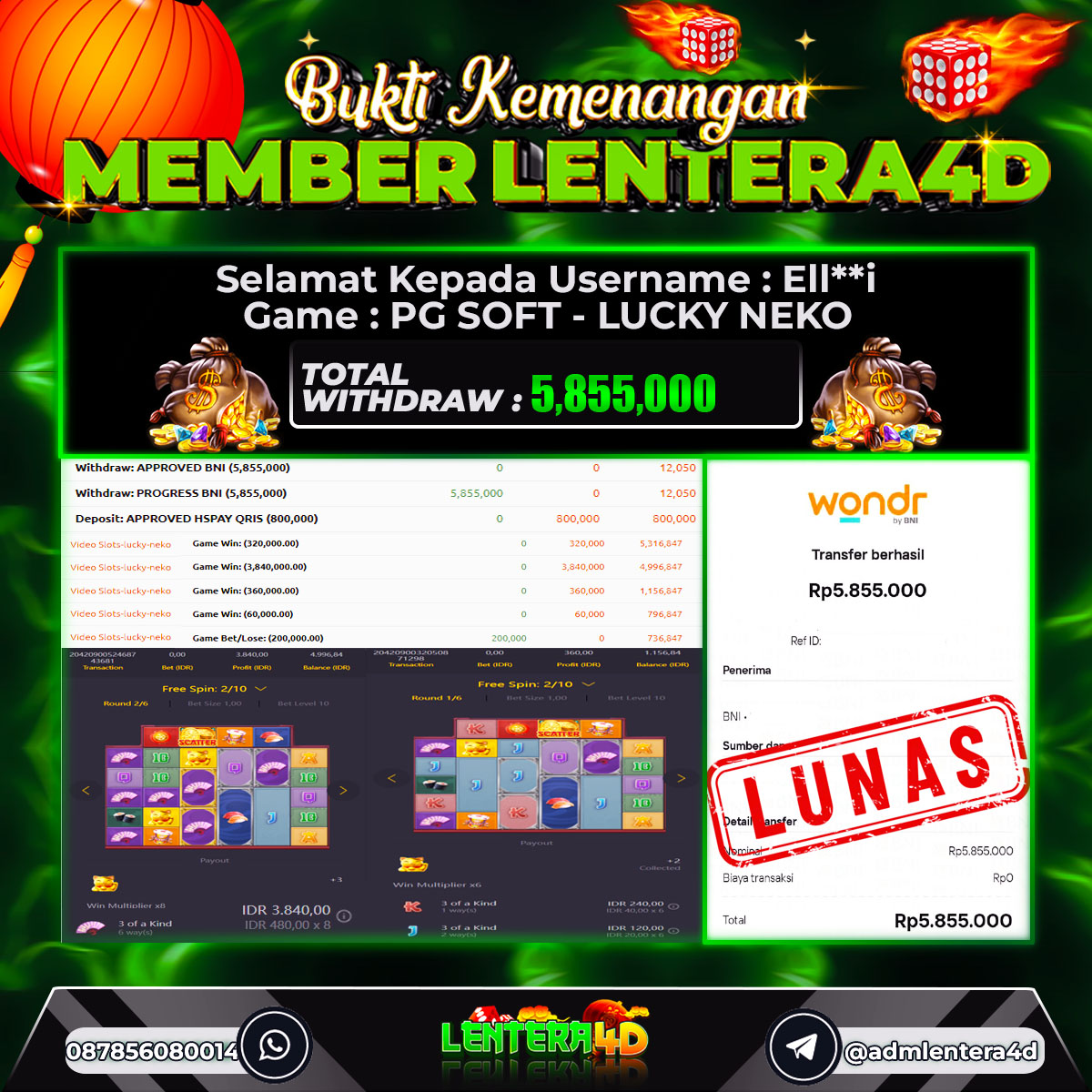 TOTAL KEMENANGAN : Rp. 5.855.000,-