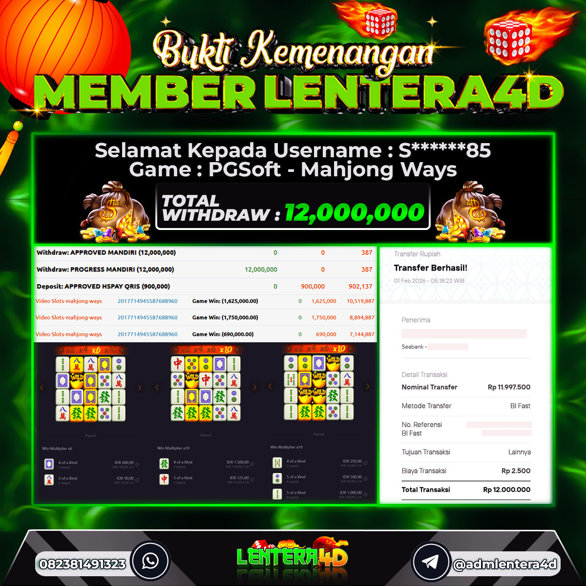 TOTAL KEMENANGAN : Rp. 12.000.000,-