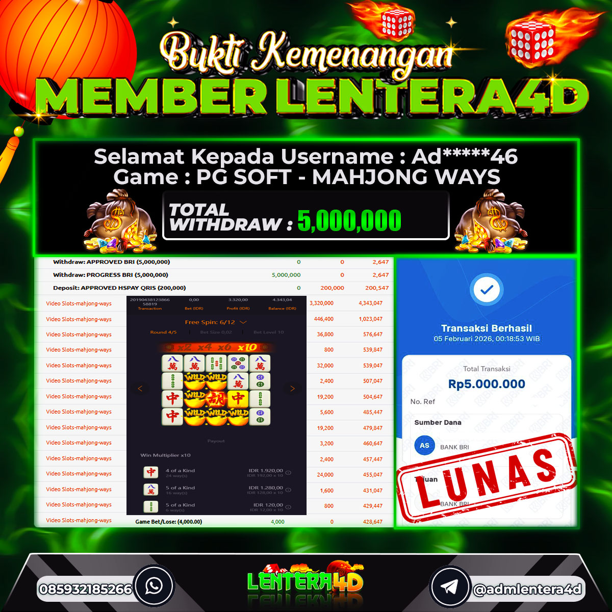 TOTAL KEMENANGAN : Rp. 5.000.000,-
