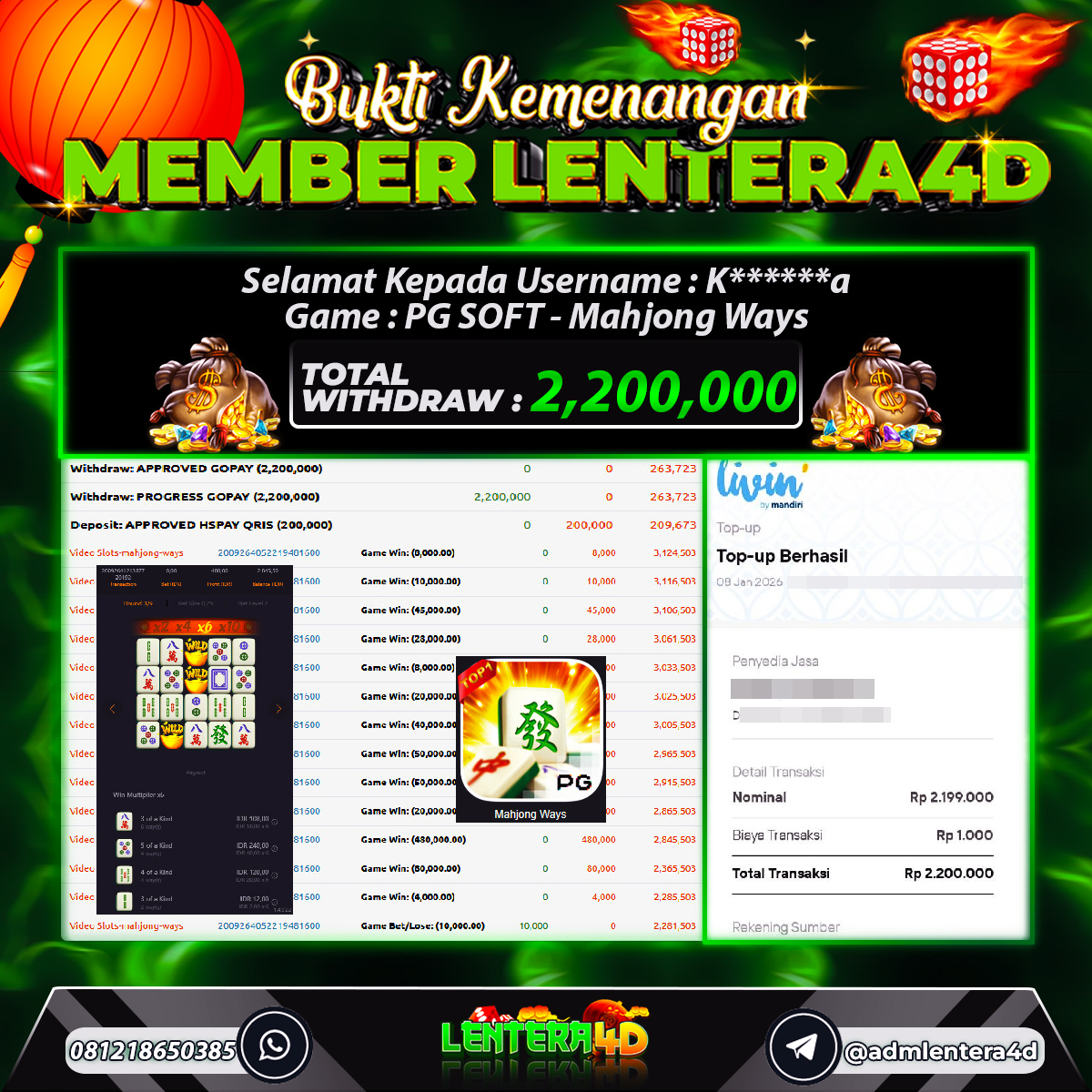 Satu lagi Bukti JP dan Pembarayan Sah Dan Dapat Dipertanggung Jawabkan, WD Berapapun Pasti Dibayar Lunas Hanya di Situs LENTERA 4D. Hati Hati Kepada Pihak Pihak Yang Mengatas namakan Pihak LENTERA4D Untuk Melakukan Penipuan.