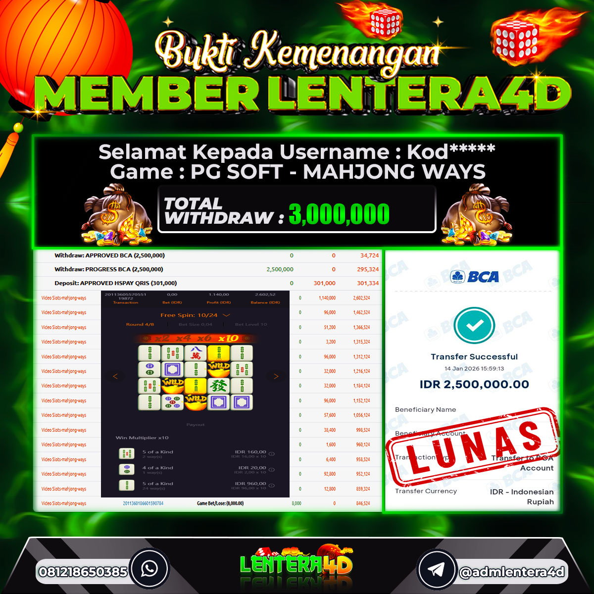Satu lagi Bukti JP dan Pembarayan Sah Dan Dapat Dipertanggung Jawabkan, WD Berapapun Pasti Dibayar Lunas Hanya di Situs LENTERA4D. Hati Hati Kepada Pihak Pihak Yang Mengatas namakan Pihak LENTERA4D Untuk Melakukan Penipuan.