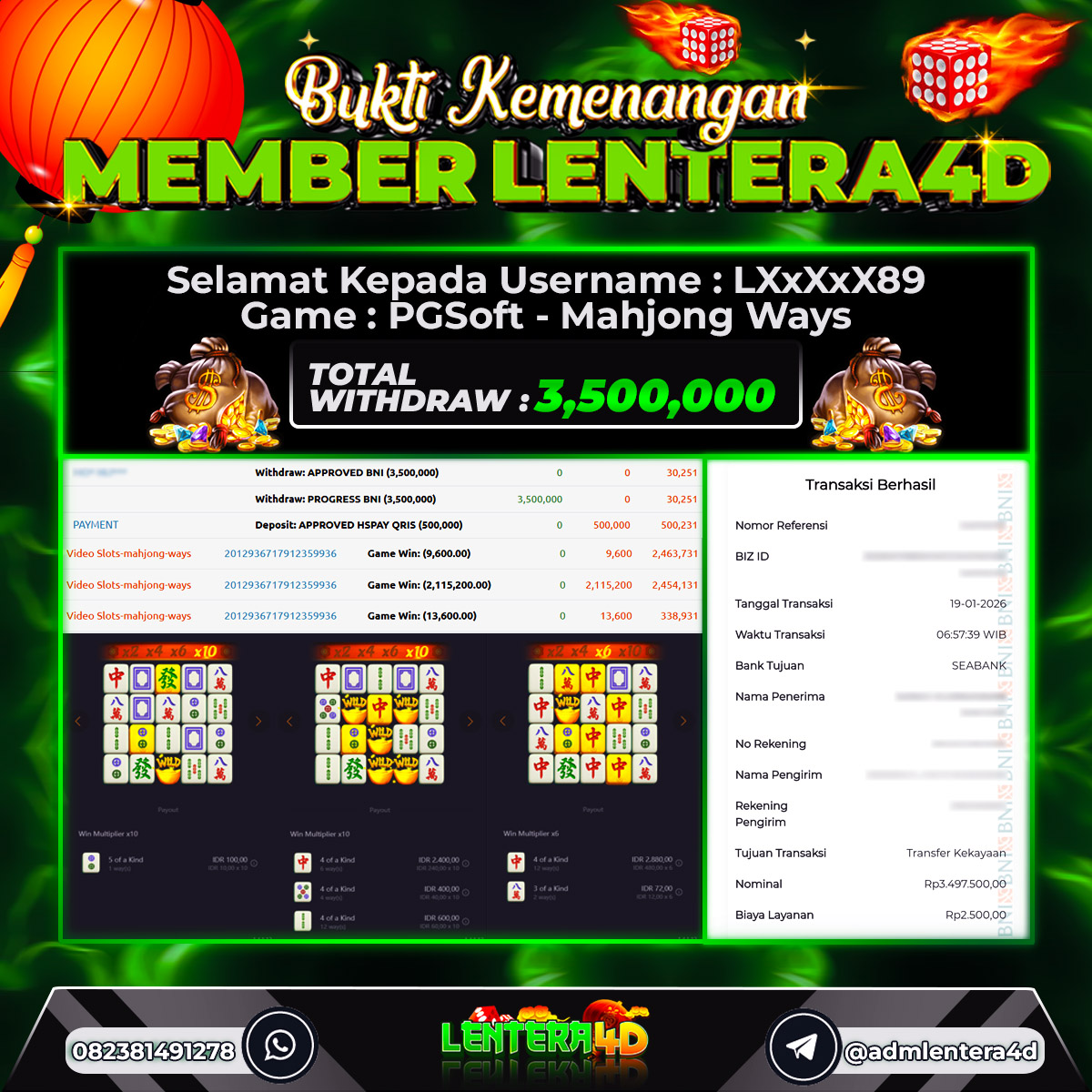 Satu lagi Bukti JP dan Pembarayan Sah Dan Dapat Dipertanggung Jawabkan, WD Berapapun Pasti Dibayar Lunas Hanya di Situs LENTERA4D. Hati Hati Kepada Pihak Pihak Yang Mengatas namakan Pihak LENTERA4D Untuk Melakukan Penipuan.