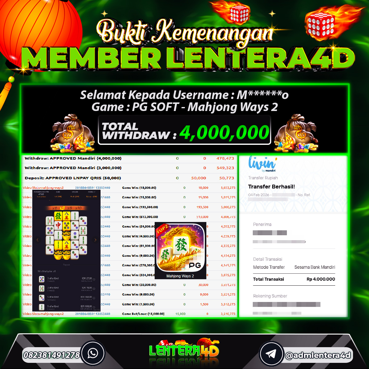 TOTAL KEMENANGAN : Rp. 4.000.000,-