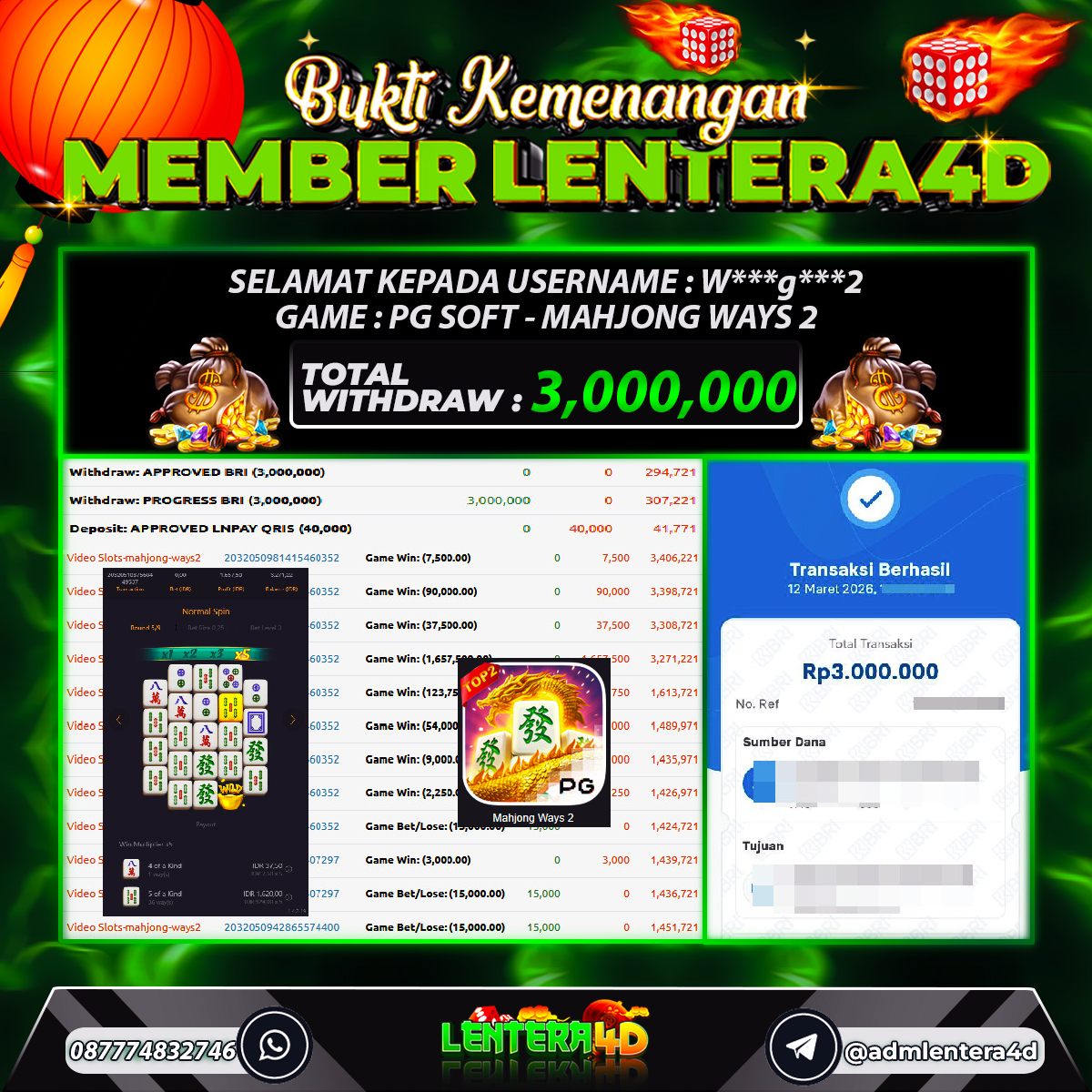 TOTAL KEMENANGAN : Rp 3.000.000,-