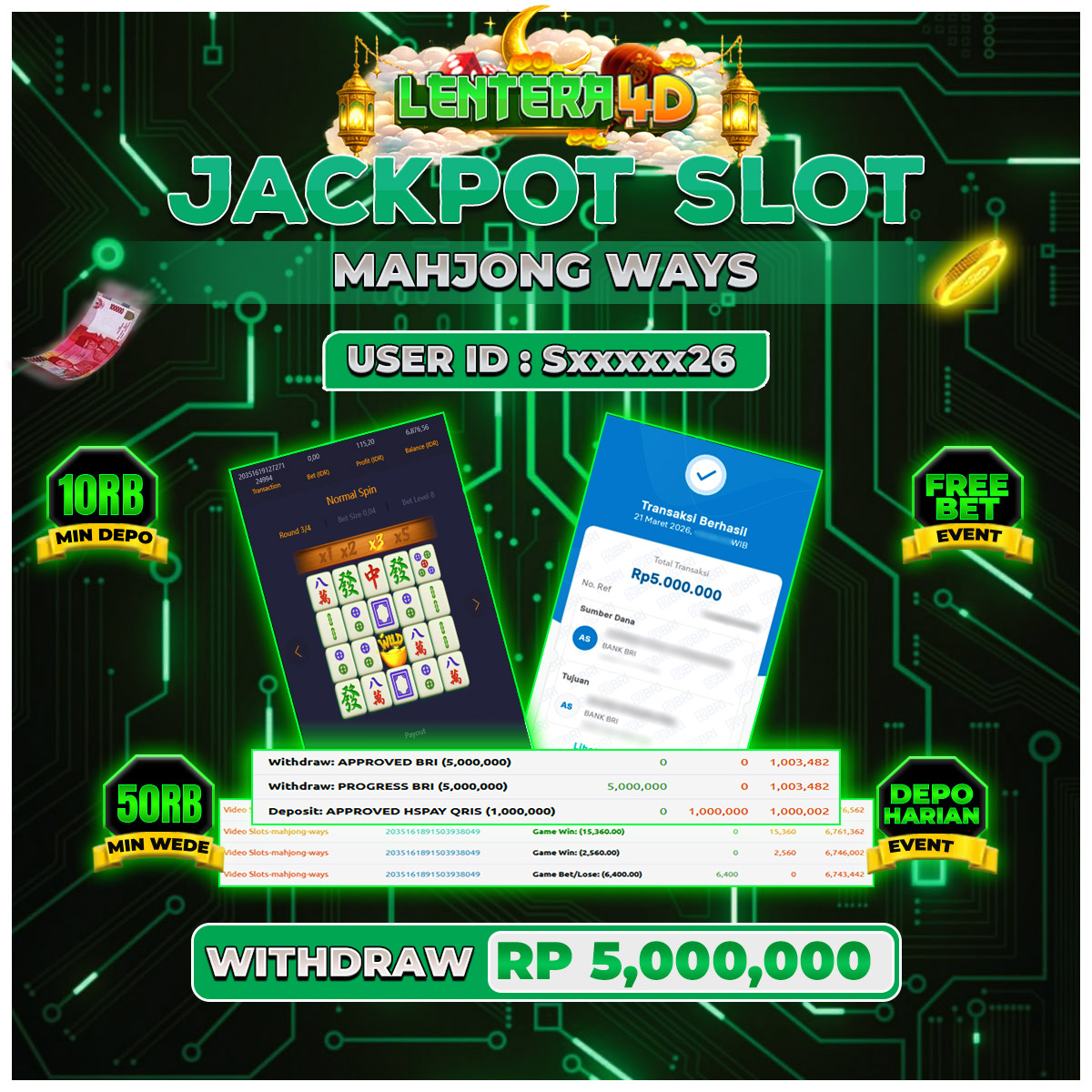 Satu lagi Bukti JP dan Pembarayan Sah Dan Dapat Dipertanggung Jawabkan, WD Berapapun Pasti Dibayar Lunas Hanya di Situs LENTERA4D. Hati Hati Kepada Pihak Pihak Yang Mengatas namakan Pihak LENTERA4D Untuk Melakukan Penipuan.