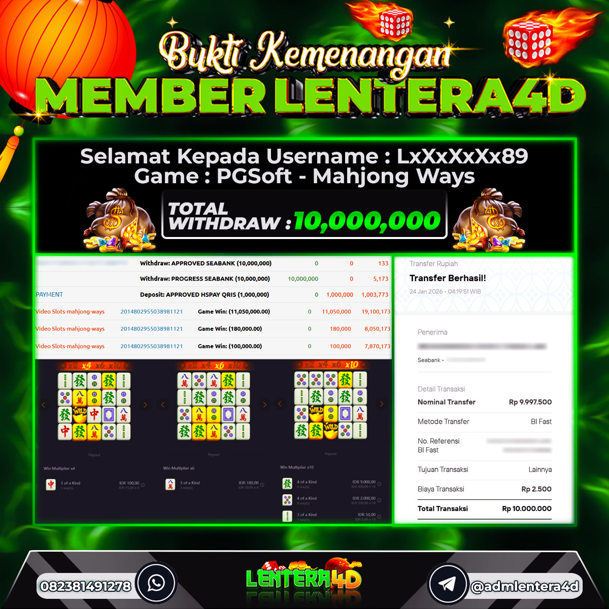 Satu lagi Bukti JP dan Pembarayan Sah Dan Dapat Dipertanggung Jawabkan, WD Berapapun Pasti Dibayar Lunas Hanya di Situs LENTERA4D. Hati Hati Kepada Pihak Pihak Yang Mengatas namakan Pihak LENTERA4D Untuk Melakukan Penipuan.