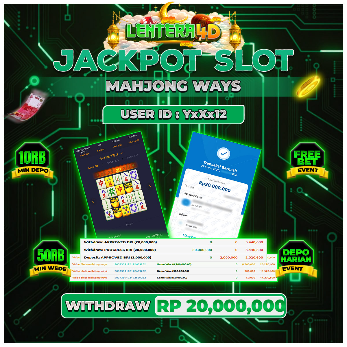 Lentera4D dikenal sebagai situs terpercaya yang selalu menghadirkan pengalaman bermain slot online yang aman, fair, dan berlisensi resmi. Di sini, kami tidak hanya sekadar memberikan janji, tapi bukti nyata berupa slip kemenangan yang dapat Anda lihat secara langsung.