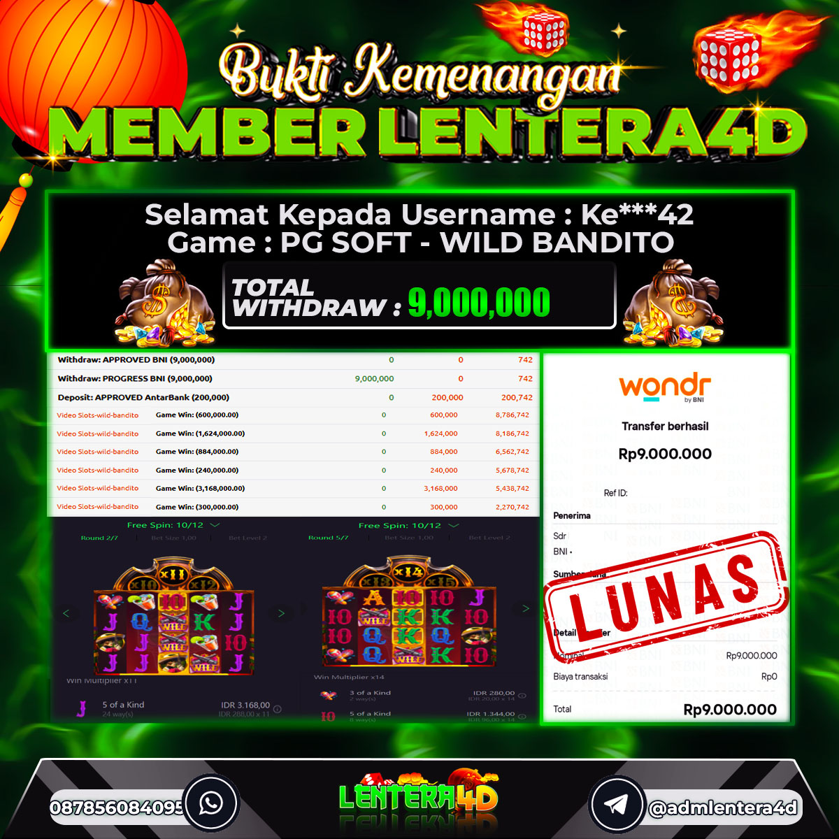 TOTAL KEMENANGAN : Rp. 9.000.000,-
