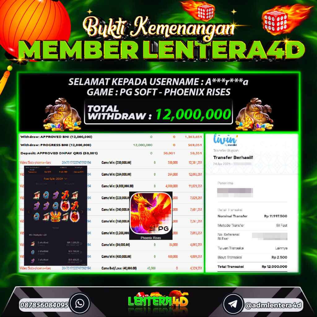 JACKPOT MAIN PHOENIX RISES 24 APRIL 2026, Jackpot Slot Gacor, Kemenangan Slot, Bukti Kemenangan Slot, Kemenangan Slot PG SOFT, Menang Slot online, Slot Gacor, Situs Aman Terpercaya, WD Berapapun Pasti DI Bayar Tuntas, Maxwin Slot Online.