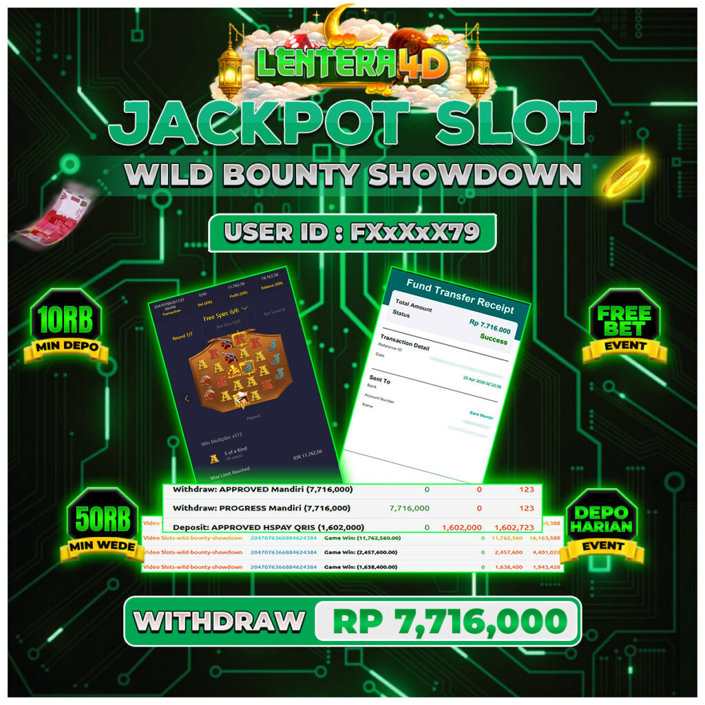 Setiap hari, member Lentera4D berhasil meraih jackpot besar dari berbagai provider slot ternama yang kami sediakan, seperti Pragmatic Play, Habanero, PG Soft, dan masih banyak lagi. Kami secara rutin menampilkan bukti screenshot atau rekapan kemenangan yang berhasil diraih, mulai dari kemenangan ratusan ribu hingga puluhan juta rupiah. Semua slip kemenangan ini kami hadirkan untuk membuktikan bahwa di Lentera4D, peluang menang itu nyata.